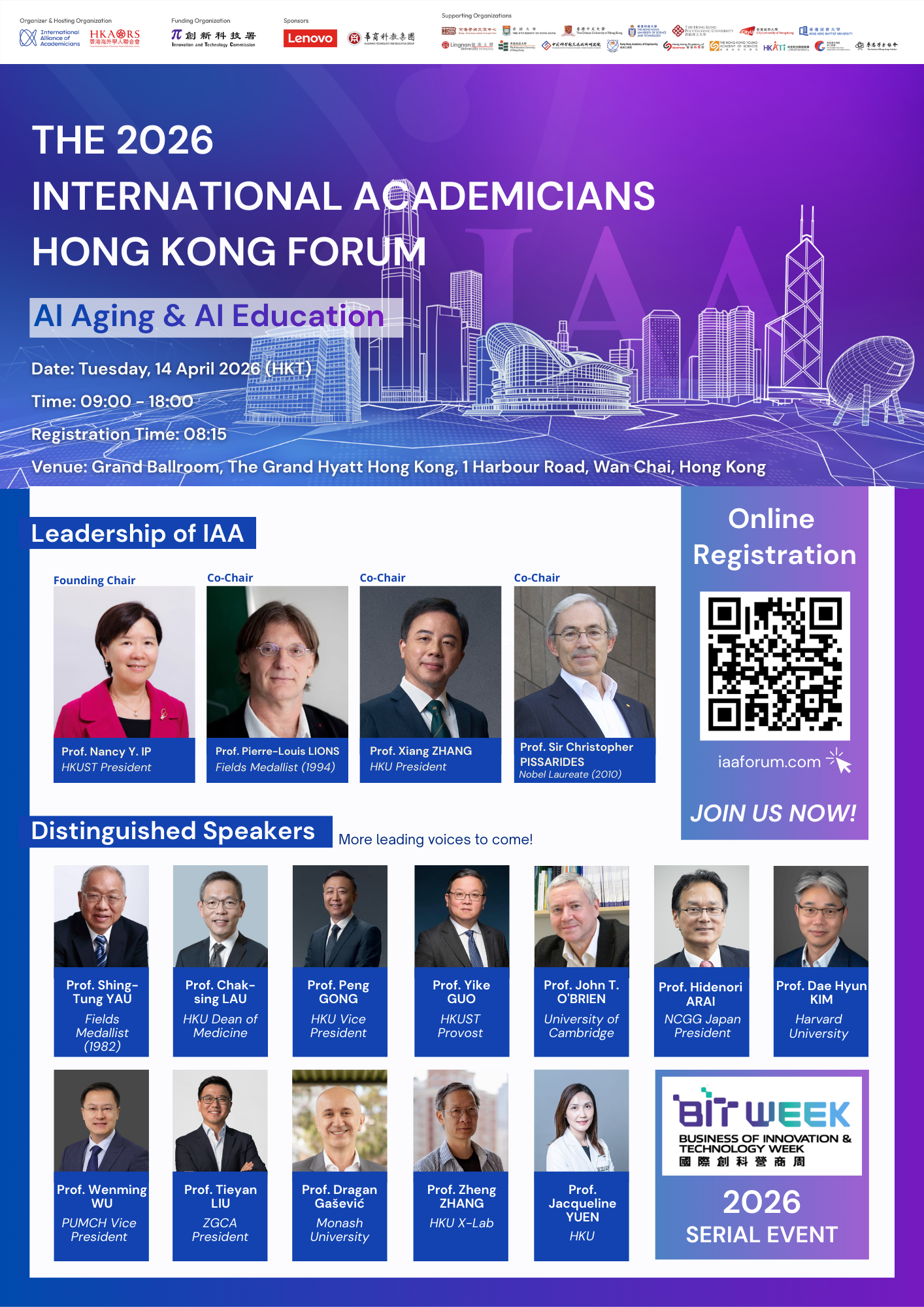 As a serial event of the 2026 Business of Innovation and Technology Week (BIT Week), we are pleased to announce that the 2026 International Academicians Hong Kong Forum will be held on 14 April 2026.